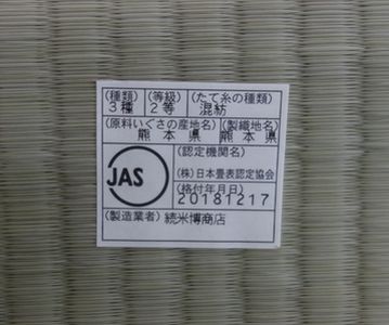 い草畳表は農産物になりますので品質規格はJASとなります。